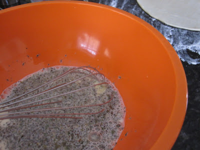 I poured the mix into the pie crusts and topped with a carved pie crust leaf.