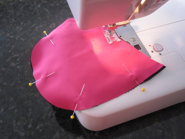 Next, I cut out the graphic from my Mod Podge t-shirt. I folded over the edge and attached to teh front with pins.